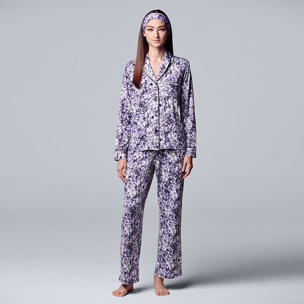 Petite Simply Vera Vera Wang 3 Piece Long Sleeve Pajama Set Matching Headband