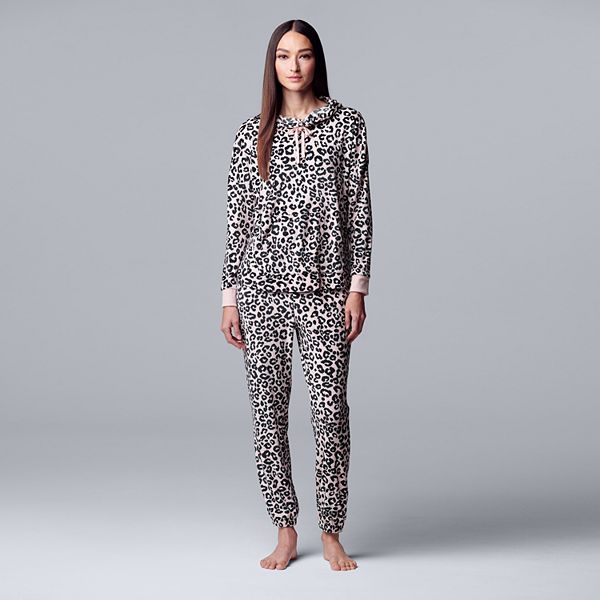 Petite Simply Vera Vera Wang Velour Hooded Pajama Top And Banded Bottom Pajama Pants Sleep Set